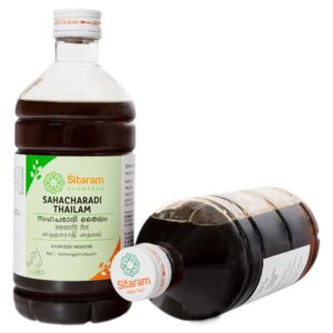 Abhyanga or ‘massage’ is an integral part of the Dinacharya (Daily routine) prescribed by Ayurvedic literature. Scriptures suggest the use of suitable oils massaged in the direction of hair growth and around joints, to pacify aggravated doshas and maintain balance. Sahacharadi taila is a gingelly oil-based preparation mentioned in the ‘Sahasrayoga-Tailaprakarana’. It is indicated for both internal and external application. It is found to have specific efficacy in restoring mobility and function in the lower extremities. It is a simple combination of Vata-hara drugs in a nourishing and warming sesame oil base.