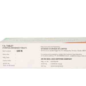 Pandu is a debilitating condition explained by class texts in Ayurveda, characterized by chronic nutritional deficiency, skin pallor, chronic fatigue and lack of appetite. ‘Annabedhi’ or Kaseesa bhasma is a therapeutic form of Ferrous sulphate with time-tested efficacy in overcoming Pandu. TA tablet or Triphala Annabhedi tablet is a quality blend of Triphala, Kaseesabhasma and Yashtimadhu in an easy-to-use tablet form. It has proven efficacy in enhancing metabolic function while improving blood heme levels.
